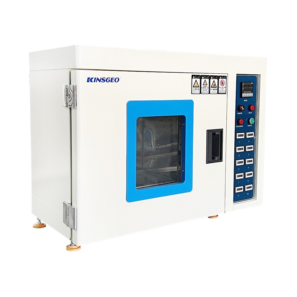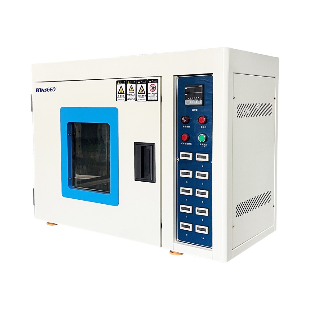 KJ-6012A烘箱型胶带保持力试验机广泛应用于胶粘带,保护膜,不干胶,标签,泡棉,胶粘剂等胶粘制品行业,用于在一定温度下的胶粘带持粘性测试。烘箱型胶带保持力试验机测试在一定设定温度下按规定方法粘贴在试验板上的胶粘带在沿长度方向的规定重力作用下抵抗位移的能力,用试片移动一定距离(或完全脱离)的时间一定时间内移动距离(或完全脱离)来表示胶粘带的持粘性。
